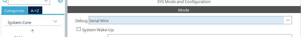 SYS:这里一定要选择Serial Wire。这一项根据你的硬件条件选择