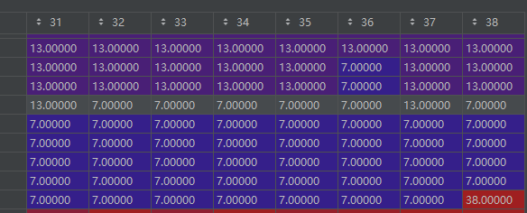 我们选择最后一天的那个数字 带入。 这个数字 就是最后一天的发射值。比如这个值是38(正常大家得到的值应该是25) 我们就要去找 38位的值 发现这一位上还是38 那么意思就是 昨天取38时 今天取38的概率最大。 所以预测值里就要加入38 但这里我们是倒序加入,最后要反过来。