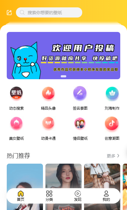 此外,美女壁纸高清头像微信小程序也会给大家带来便利;欢迎大家使用、以及提意见,我会让它更美观好用!