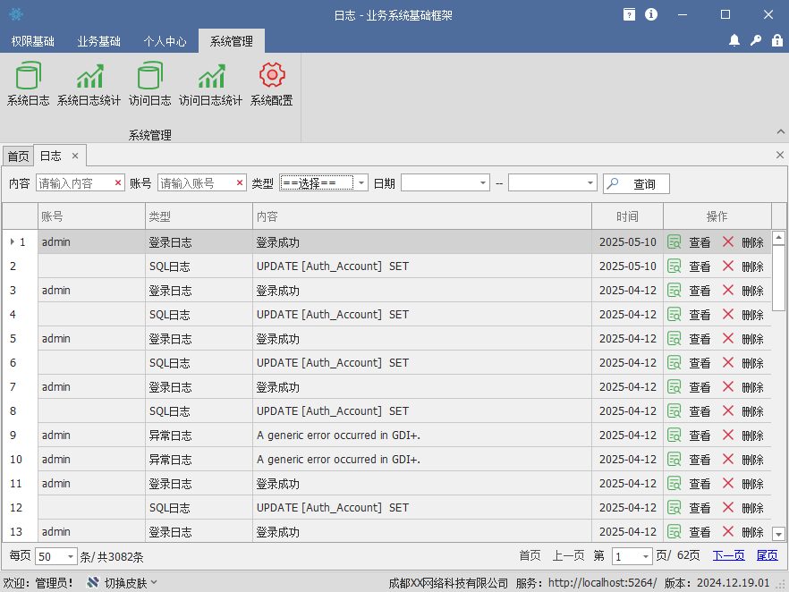 日志包括:登录日志,异常日志,操作日志,SQL日志
