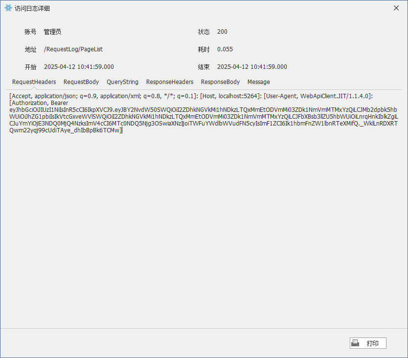 记录了ResponseBody ,ResponseStatus ,RequestBody,QueryString ,Path,RequestHeaders ,ResponseHeaders]