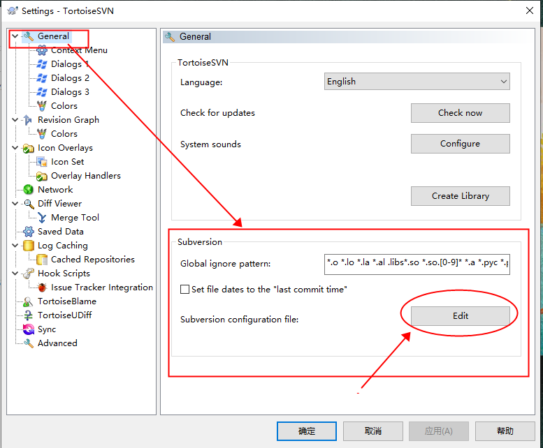 1.桌面空白处鼠标右键->TortoiseSVN->设置(settings)如下图1 general常规设置下面有一个subversion区域,