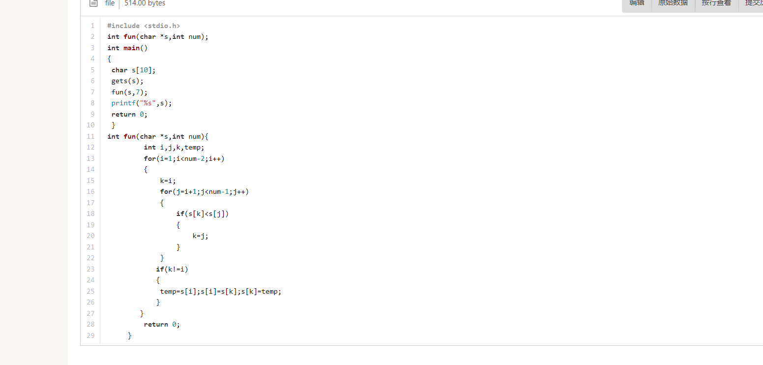 题目6-9 字符串中除首尾字符外的其余字符按降序排列