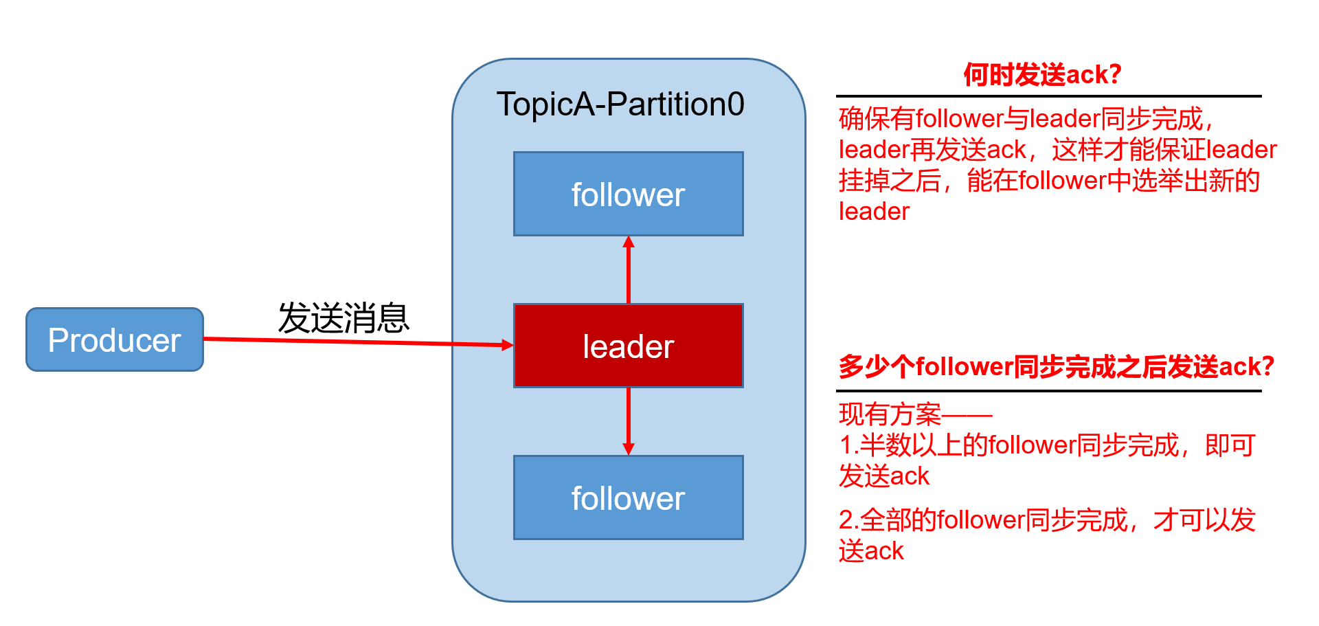 8)leader:每个分区多个副本的“主”,生产者发送数据的对象,以及消费者消费数据的对象都是leader。