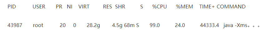 大概类似上面这样,能看到哪个进程,CPU负载最高,还有启动这个进程的命令,比如一般就是java啥啥的。