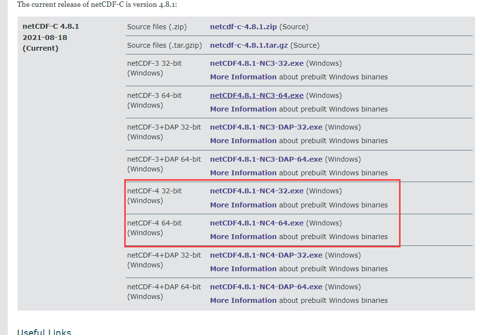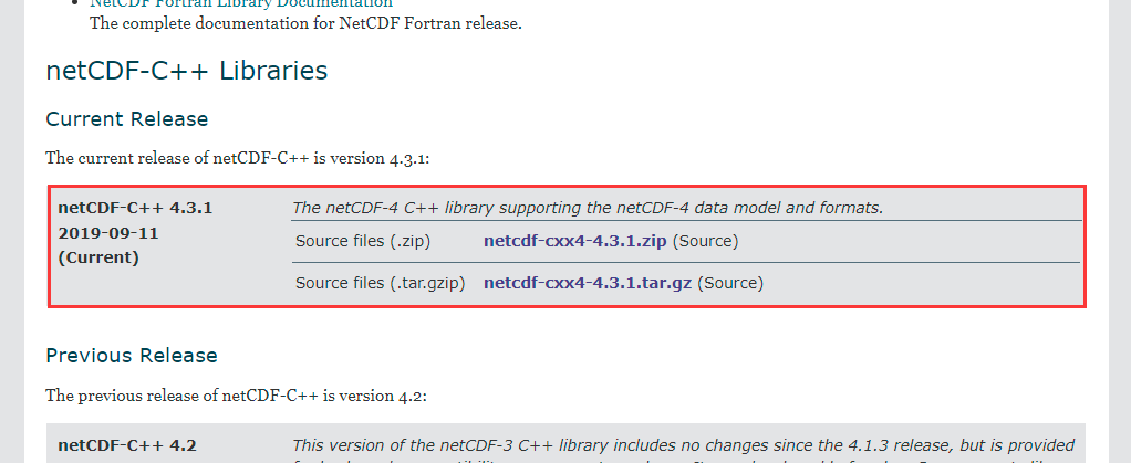 下载对应的NetCDF-C和C++库: