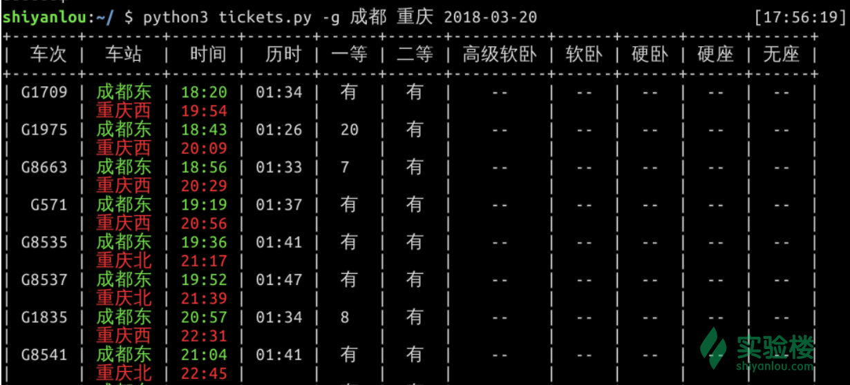 下面让我们来用 Python 写一个命令行版的火车票查看器, 只要在命令行敲一行命令就能获得你想要的火车票信息!