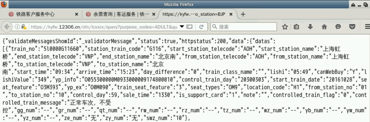 $ python3 tickets.py 上海 北京 2016-10-10