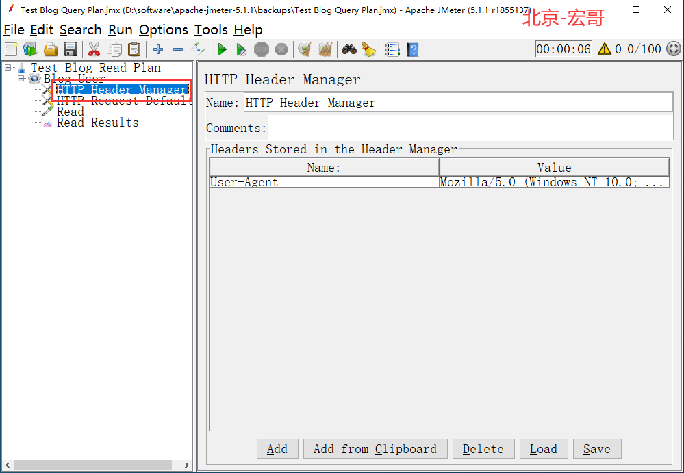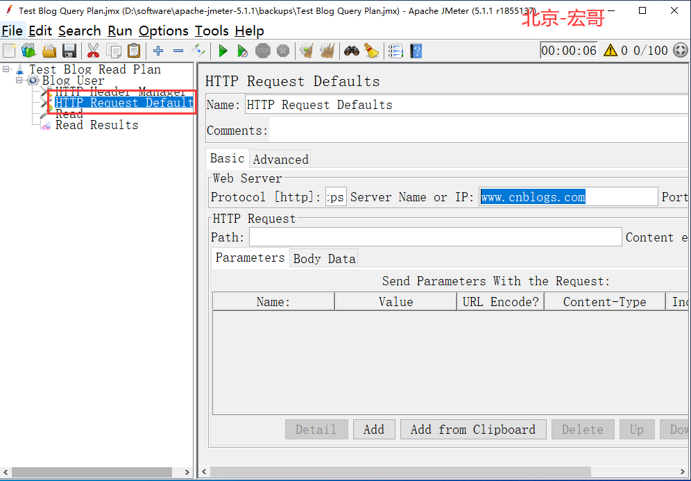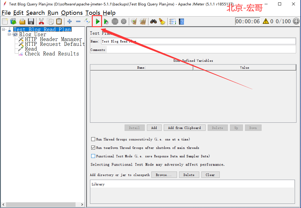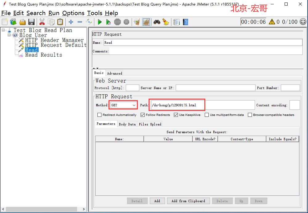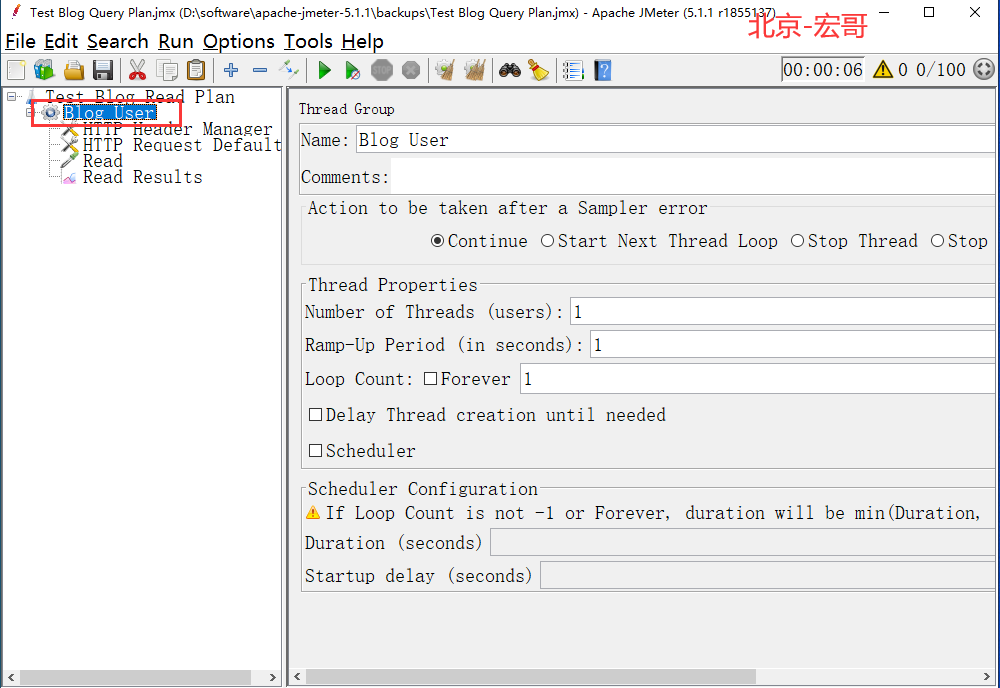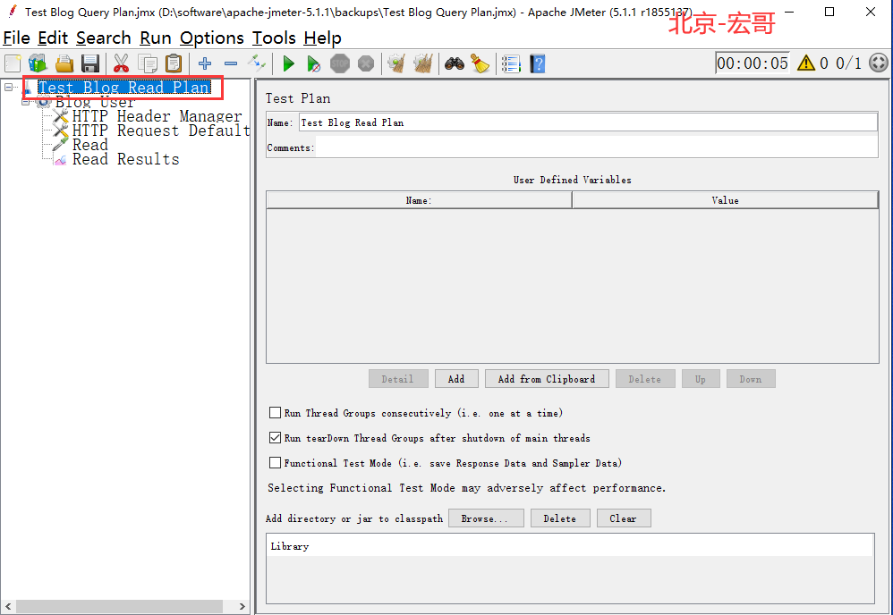 1.建立一个测试计划命名为:Test Blog Read Plan。如图下所示: