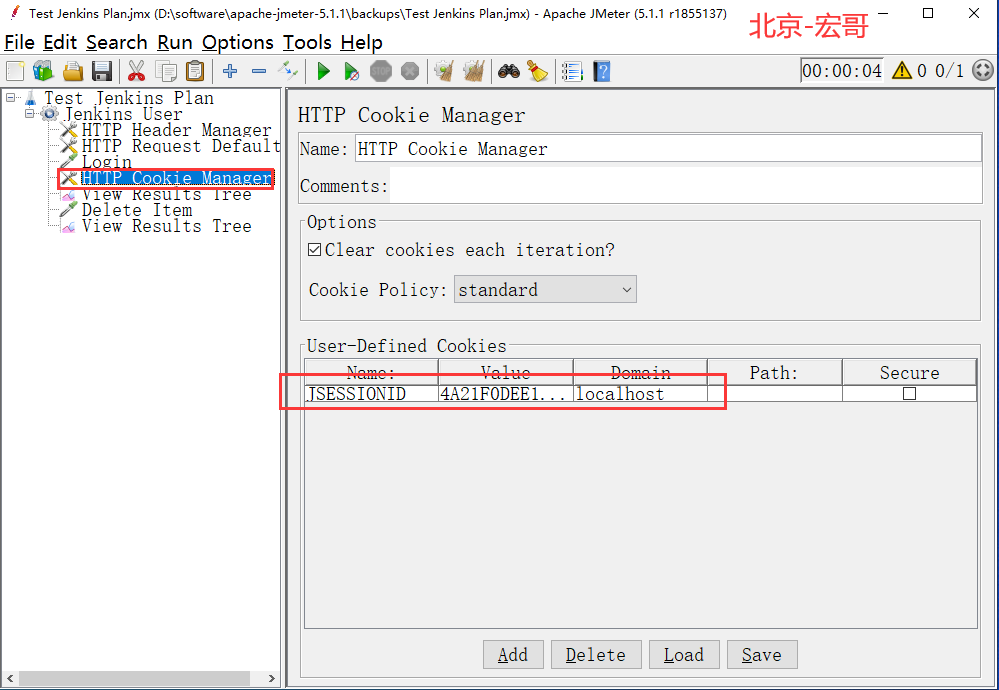 6.选中线程组,添加一个cookie管理器,用来管理登录后的cookie。如下图所示: