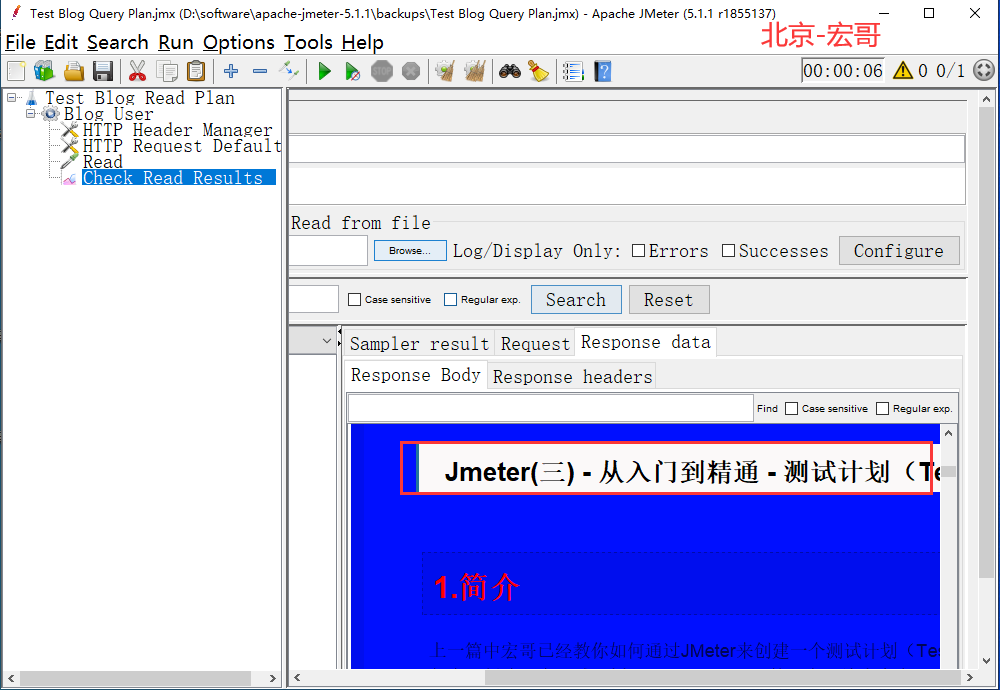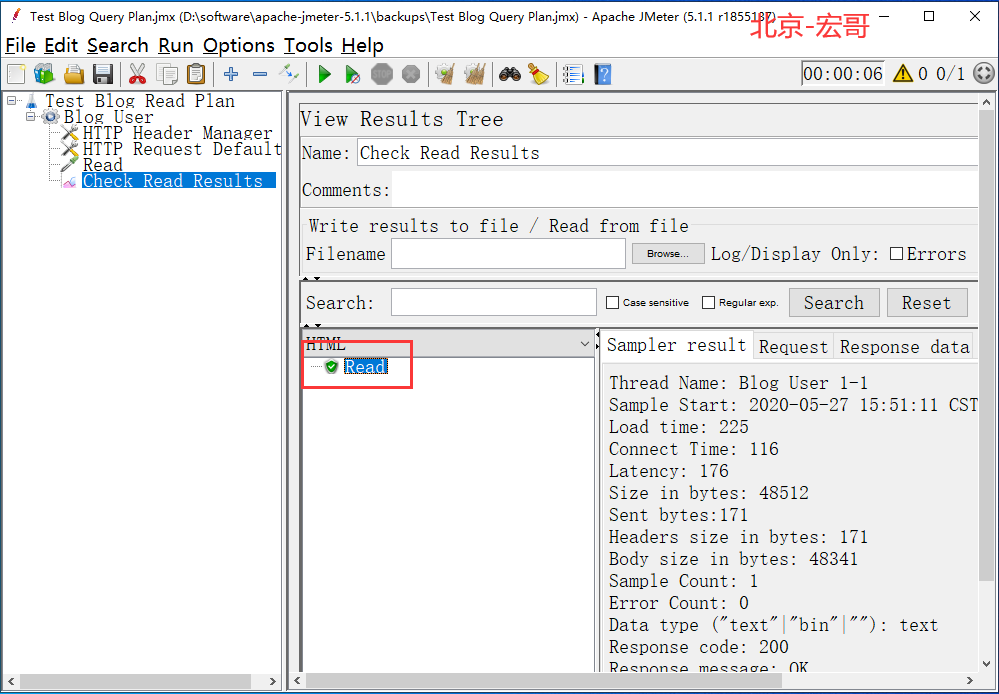 注意:敲脑壳,敲黑板啦!!!宏哥这个就是一个用户阅读一次,如果要压测你可以设置多个用户同时阅读。