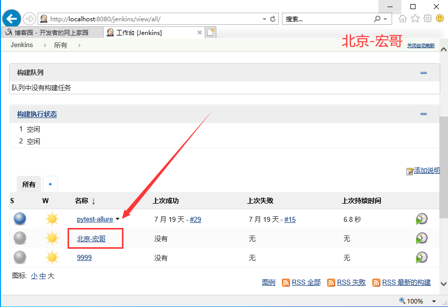 1、Jenkins的新建任务里有“北京-宏哥”,如下图所示: