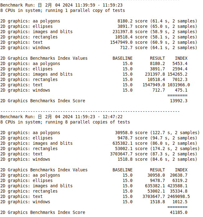 ./Run graphics -c n#执行2D多核性能测试