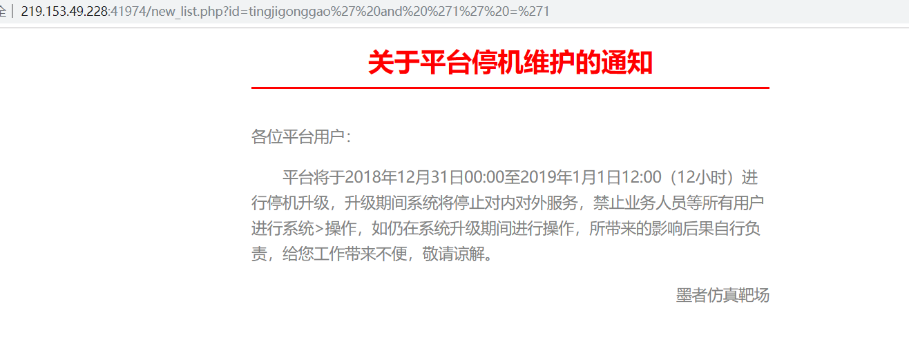 http://219.153.49.228:41974/new_list.php?id=tingjigonggao' and '1' ='1,页面恢复正常