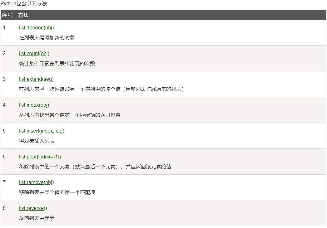和字符串一样,列表同样可以被索引和截取,列表被截取后返回一个包含所需元素的新列表。