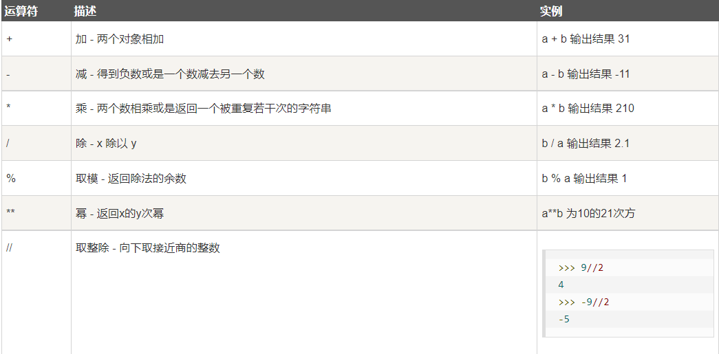 ** 是python中的幂运算符,其他运算符和java等语言一样。