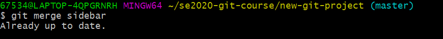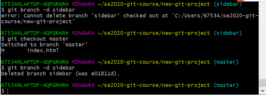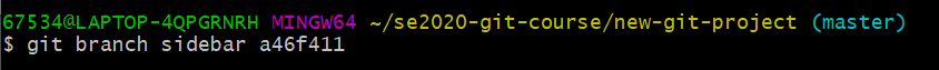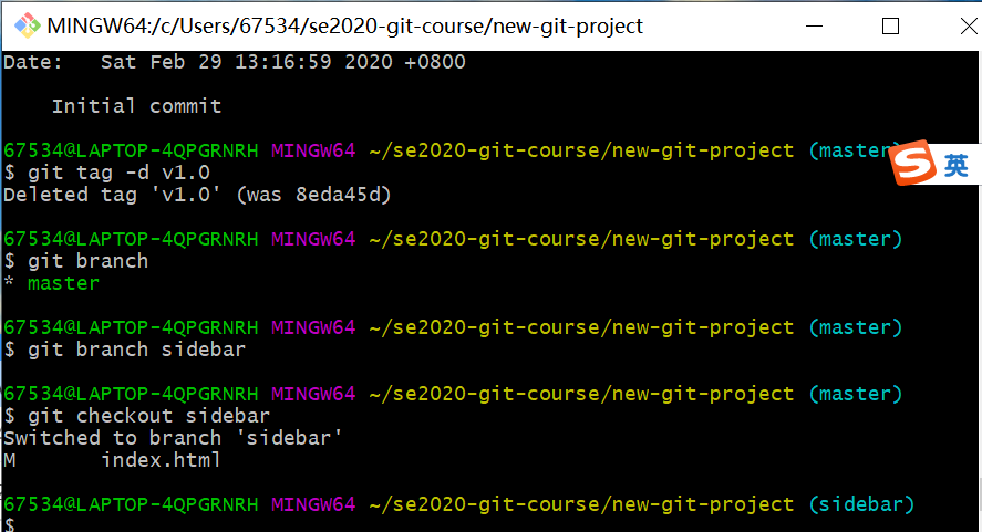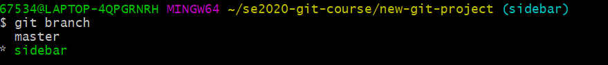 由于目前提示符显示的是当前分支master。要使用该sidebar分支,你需要切换到该分支。需要切换到其他分支,运行git checkout sidebar。
