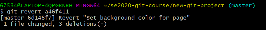 git 还原 具体的 commit 时,git 会执行和 commit 中的更改完全相反的更改。创建了一个包含一些更改的 commit,使用 git revert 命令还原它。