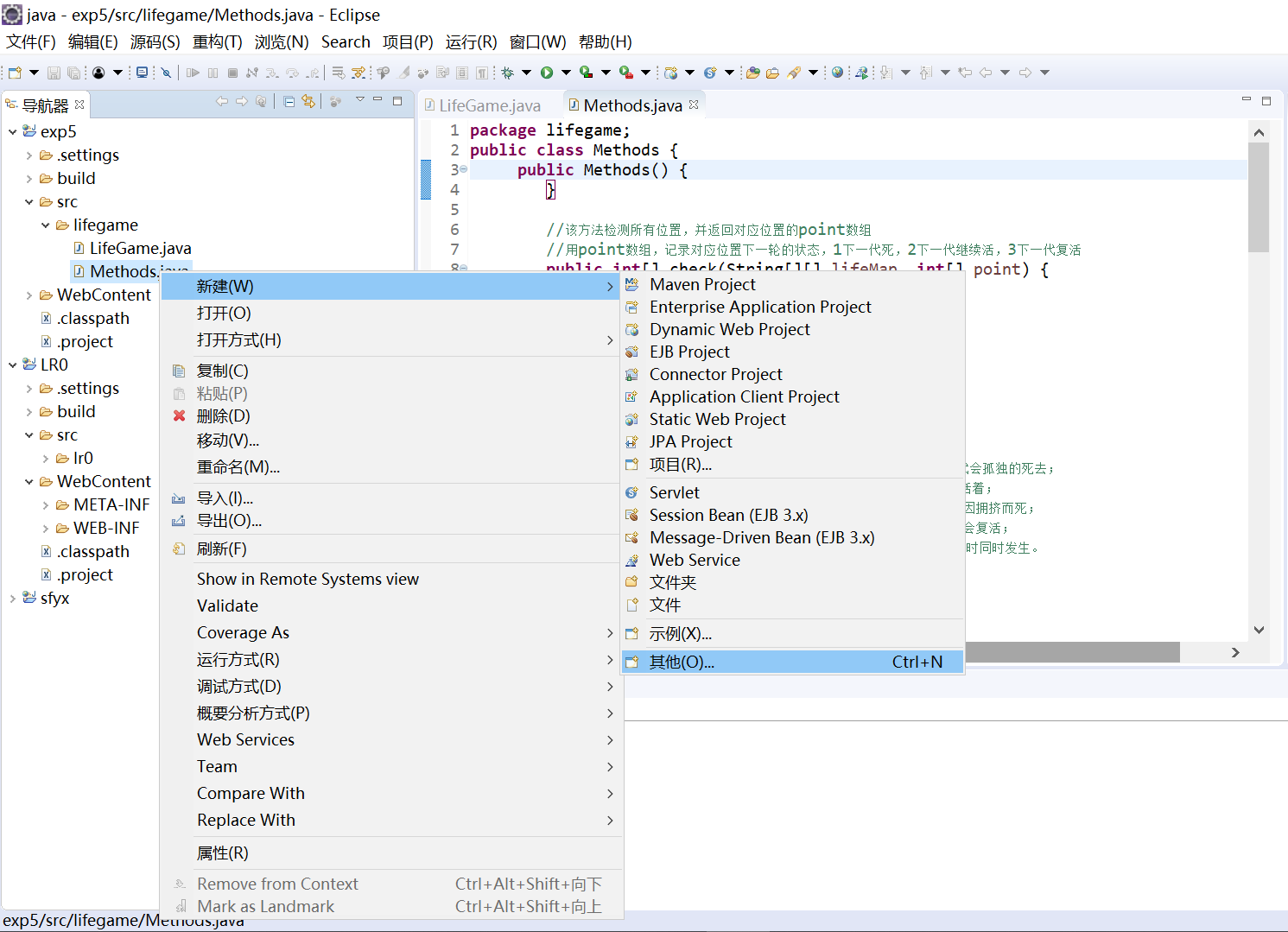 选中Methods.java,右击新建—>其他
