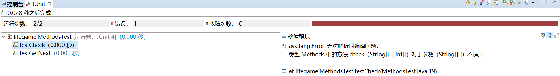 首次测试,出现错误,即l类型Methods中的方法check对参数不适用