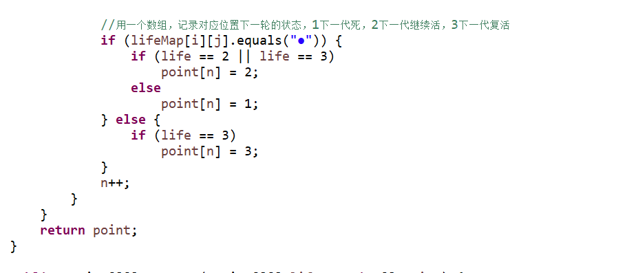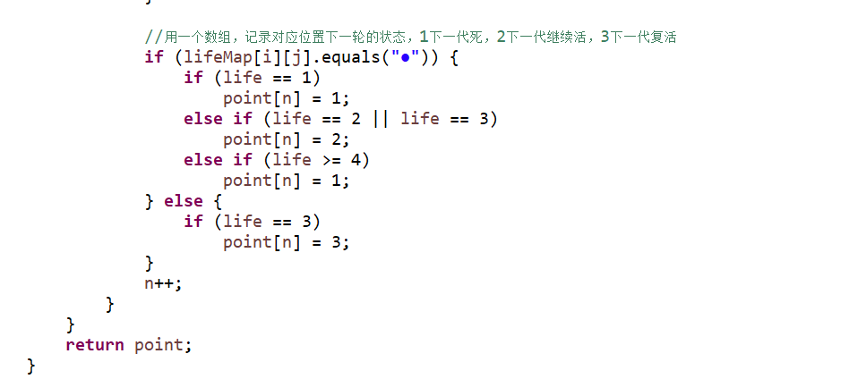 用point数组,记录对应位置下一轮的状态,0:上下代为死 1:下一代死,2:下一代继续活,3:下一代复活