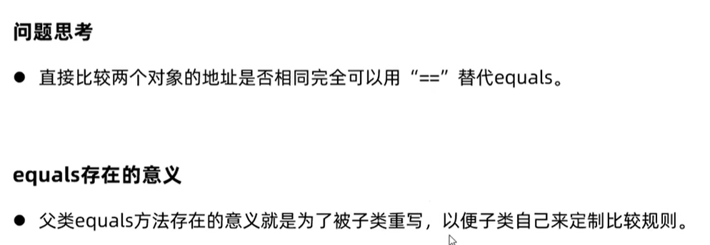 //“==”号对比的是双方的内存地址,Object的equal方法就是“==”,要比较对象内的值是否相同的话,需要在类中重写equal方法