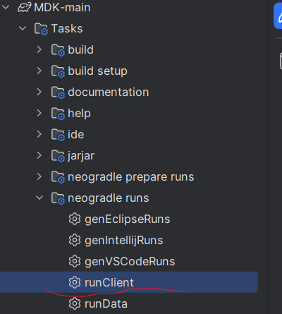 修改完成之后,项目会自动构建一下,等待构建成功后,我们可以直接运行右侧的RunClient命令进入游戏查看我们的模组了。