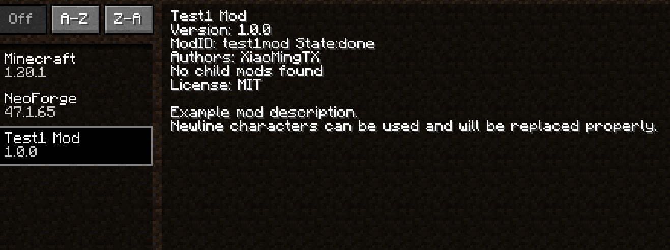 在点击主界面的MOD选项就能查看我们刚才所创建的mod了。