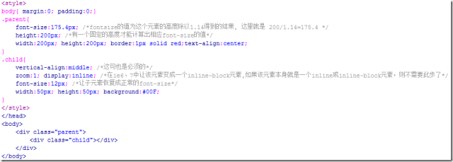 另外,如果 vertical-align:middle 是写在父元素中而不是子元素中,这样也是可以的,只不过计算font-size时使用的 1.14 这个 数值要变成大约 1.5 这个值。