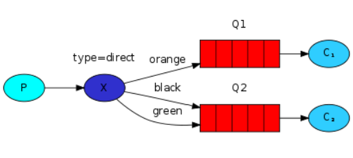 RabbitMQ内部组件,每个消费者监听自己的队列 - 生产者将消息发给