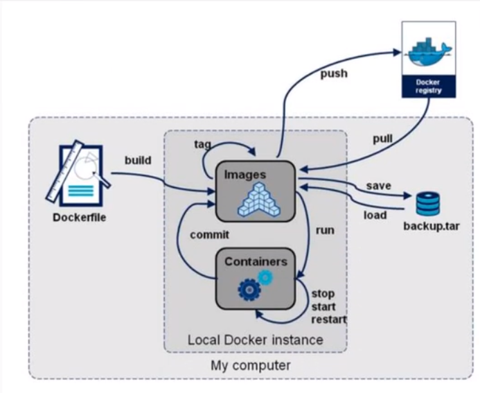 可以在网络上找到这样的图片,可以看到镜像是一层一层的,可以在浏览器上搜索到 DockerFile 里面的指令解释