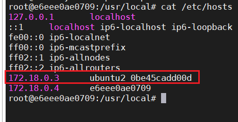 # docker run -it --name ubuntu3 -P --link ubuntu2 xmtubuntu