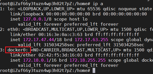 我们发现有一个 docker0,是因为我们的宿主机上面安装了docker 的服务,docker 会给我生成一个虚拟网卡,图中的这个 docker0就是虚拟网卡信息