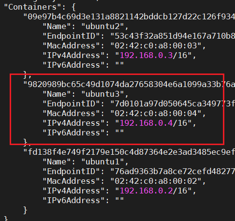 此处我们设置子网是 --subnet 192.168.0.0/16,网关是192.168.0.1,那么我们剩下可以使用的ip就是 192.168.0.2 – 192.168.255.254 , 192.168.255.255是广播地址