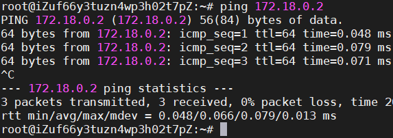 64 bytes from 172.18.0.3: icmp_seq=1 ttl=64 time=0.071 ms