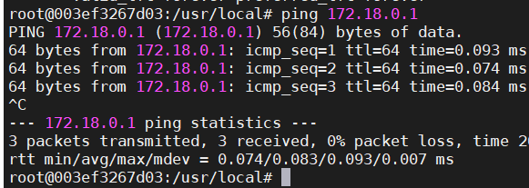 PING 172.18.0.3 (172.18.0.3) 56(84) bytes of data.