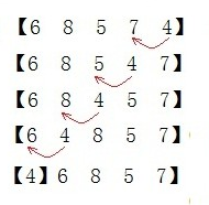 通俗来讲就是相邻的两个数,将小数放在前面,大数放在后面。第一次:首先比较第1个和第2个数,将小数放前,大数放后。然后比较第2个数和第3个数,将小的数放前面,大的数放后面,如此继续,直至比较最后两个数,将小数放前,大数放后。如下图所示。
