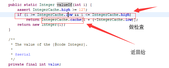 缓存[-128,127]之间的数字,实际上就是系统初始的时候,创建了一个[-129,127],当我们调用valueOf的时候,首先检查是否在[-129,127]之间,如果在这个范围,则直接从缓存数组中拿出已经建好的对象,如果不在则创建新的Intefer对象。