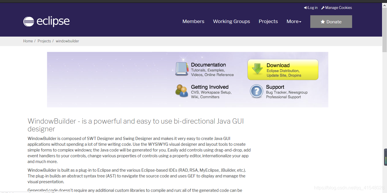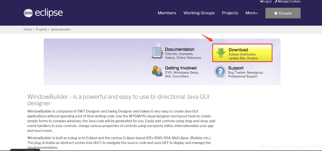1.打开浏览器输入下载地址:https://www.eclipse.org/windowbuilder/