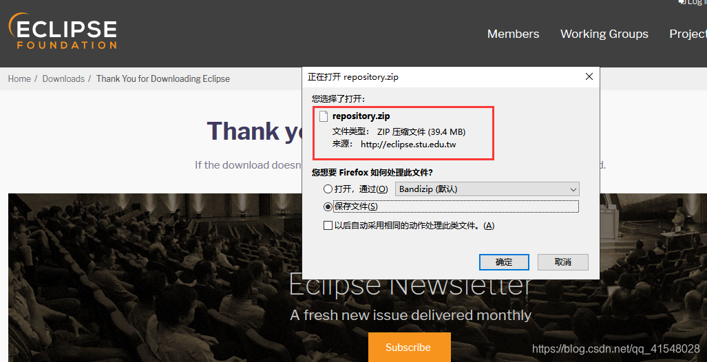 5.等待下载完成即可(建议把下载的压缩文件包保存在eclipse安装目录下)。