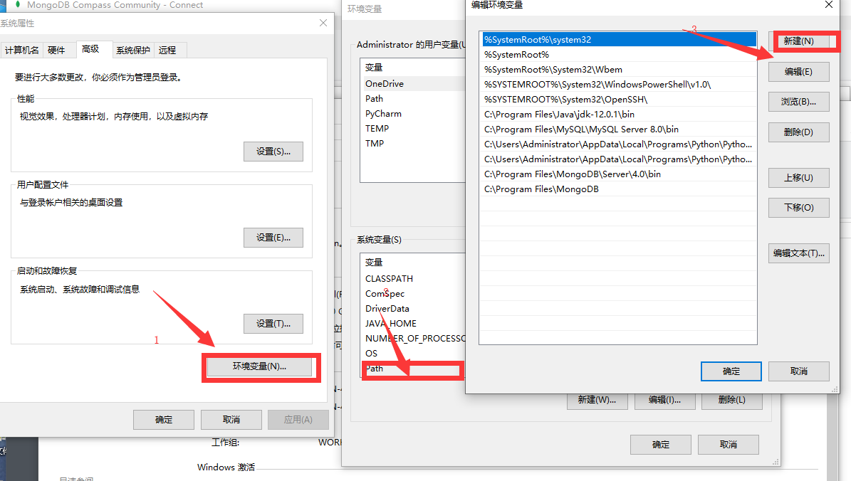 把MongoDB加入环境变量 C:\Program Files\MongoDB\Server\4.0\bin,一定是在bin目录下。
