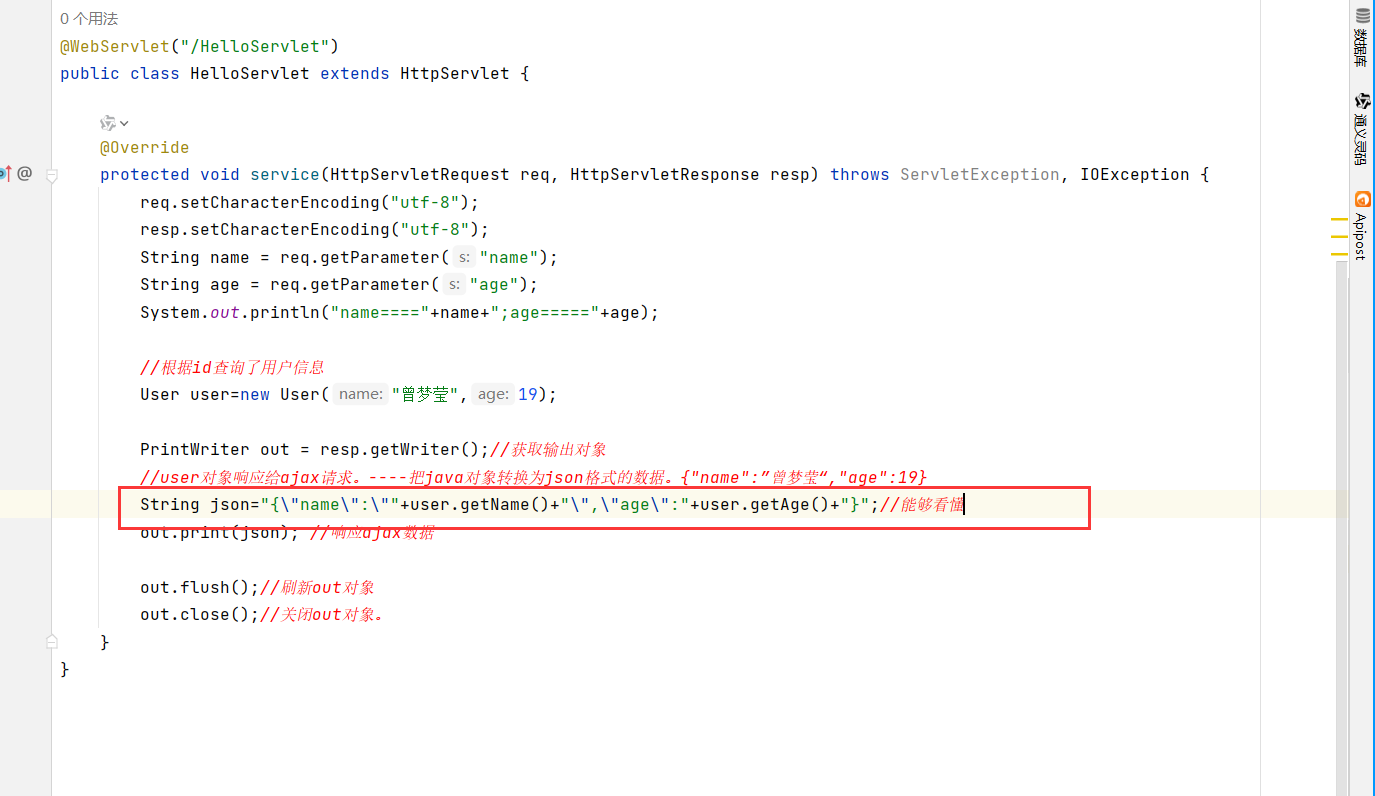 $.get("/HelloServlet",{"name":"刘德华","age":18},function(result){//服务器响应后触发该函数,并把服务器响应的数据传递给result变量。