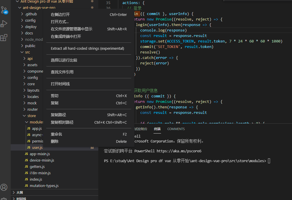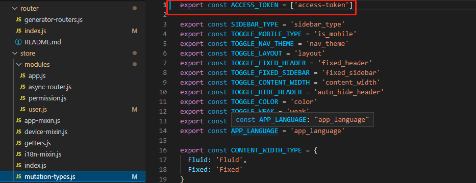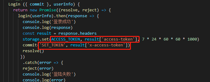 我们请求到了token我们要储存起来,才能让我们的过滤器添加token的操作有意义,这时候我们可以去找一下我们的token储存在了哪里,这个时候我们回到我们刚才发现登录请求的页面,这个页面里面就有对我们token的操作,只不过我需要更改一下,由于我的返回的token的名字与这个有点区别,所以我也要改一下,这个时候我们就要先跑一下我们的项目了
