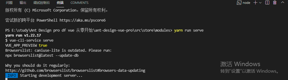 然后在里面输入:yarn run serve 然后回车就可以了。等待它跑完以后,我们可以看到这个画面