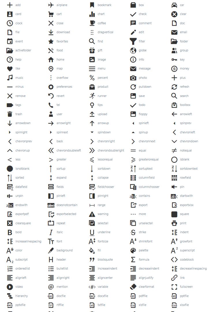 来源:Icons: DevExtreme - JavaScript UI Components for Angular, React, Vue and jQuery by DevExpress 21.2