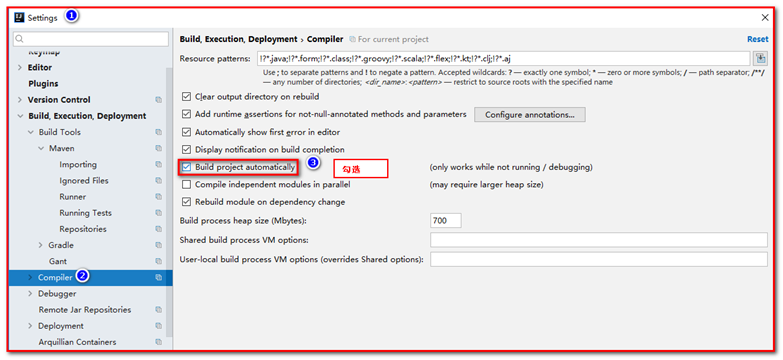 出现这种情况,并不是热部署配置问题,其根本原因是因为Intellij IEDA默认情况下不会自动编译,需要对IDEA进行自动编译的设置,如下: