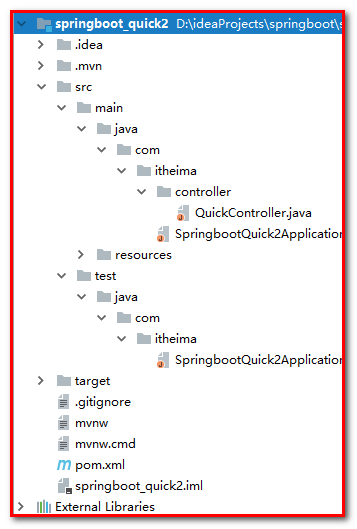 在引导类MySpringBootApplication同级包或者子级包中创建QuickStartController.java