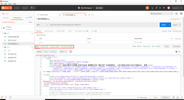6.完成1-5后,点击send查看如下响应区域中的各个参数值是否与预期一致,如此,就完成了一次需要登录后才能调用的接口测试。