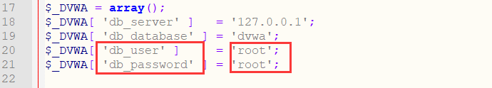 - 打开刚刚重命名的config.inc.php文件,修改db_user和db_password为root、root。